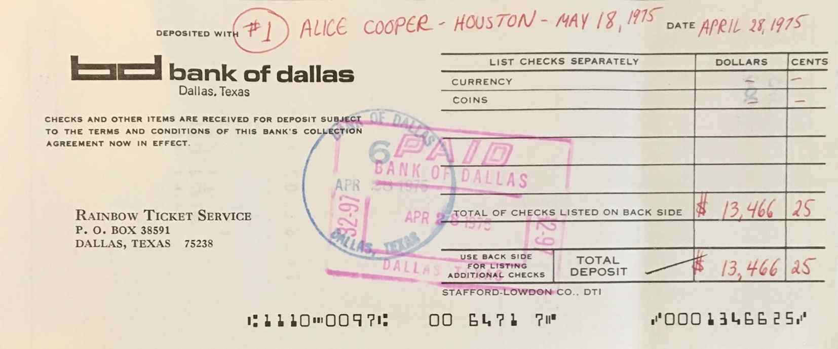 Deposit Slips Dallas 1975