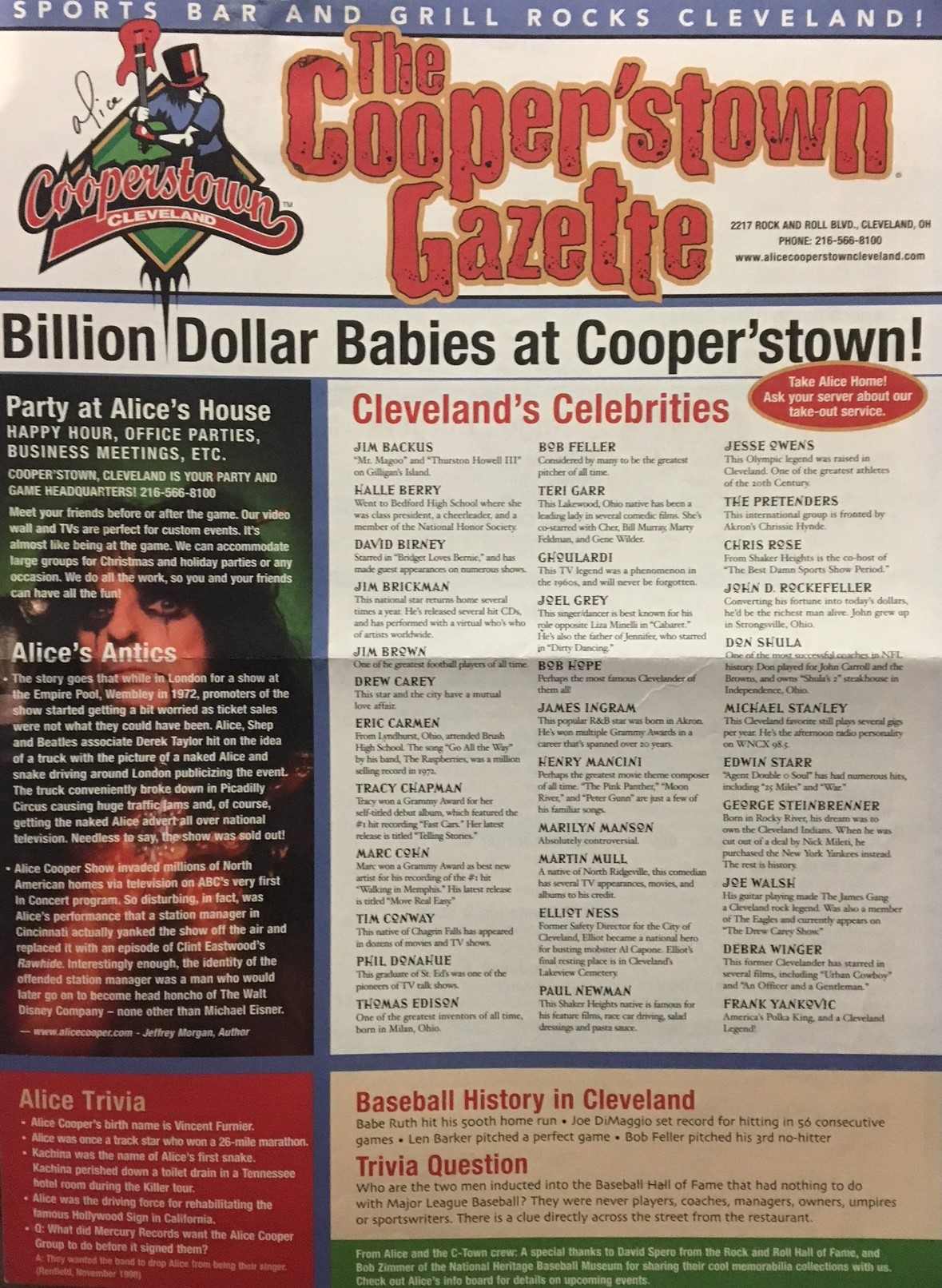 Menu - Cooperstown - Cleveland