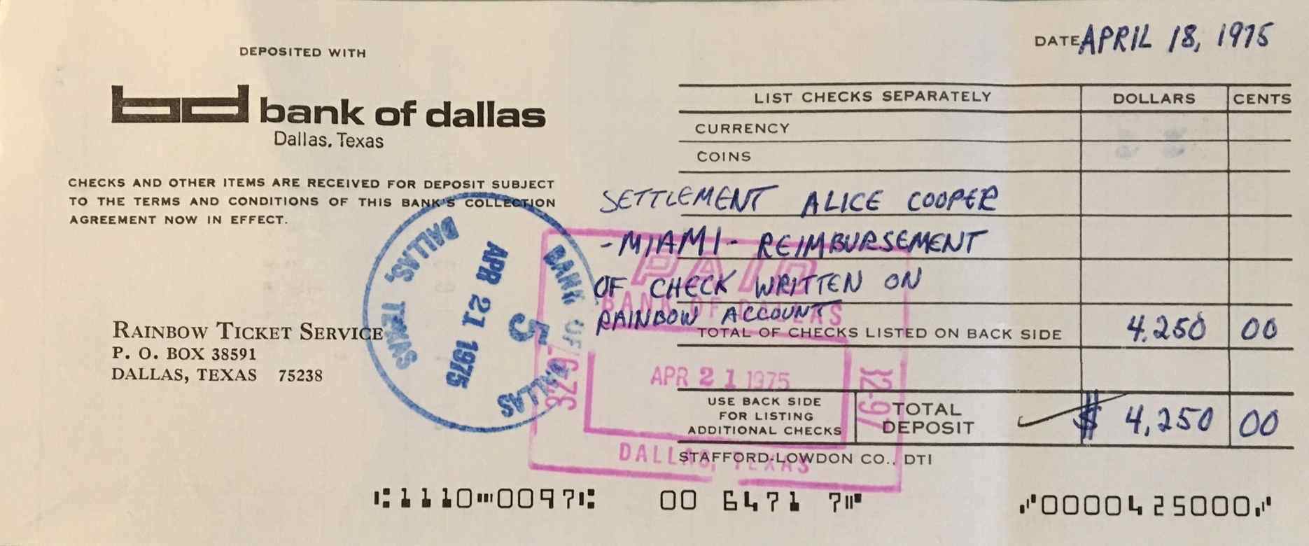 Deposit Slips Dallas 1975